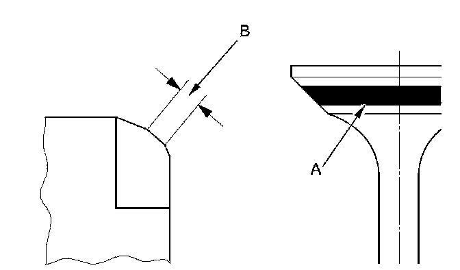 7. The actual valve seating surface (B), as shown by the blue compound, should be centered on the seat: