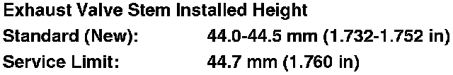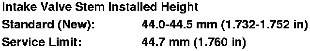 9. If the valve stem installed height is beyond the service limit, replace the valve and recheck. If it is still beyond the service limit, replace the cylinder head; the valve seat in the head is too deep.