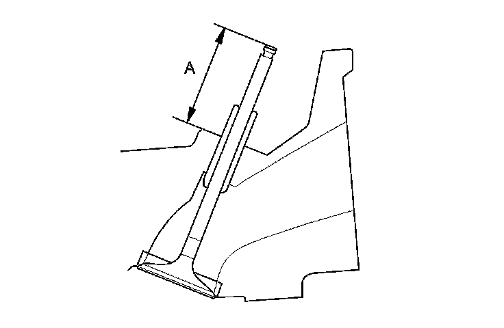 8. Insert the intake and exhaust valves in the head, and measure the valve stem installed height (A).