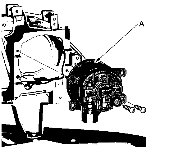 2. Remove the two screws, then remove the fog light (A) from the front bumper.