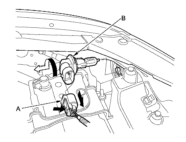 3. Disconnect the 1P connector (A) from the headlight bulb (B).