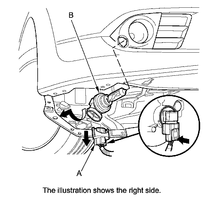 2. Disconnect the 2P connector (A) from the fog light (B).