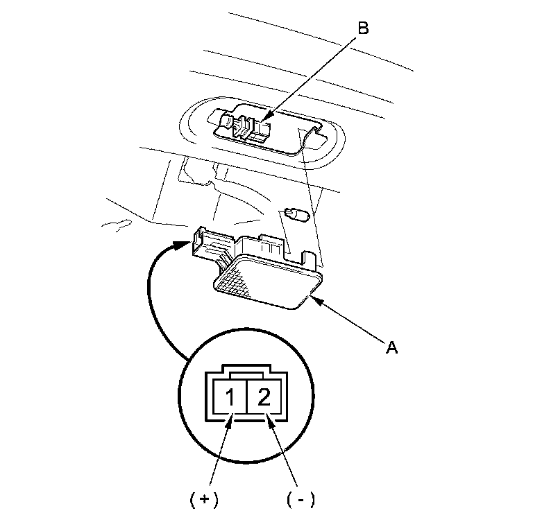 4. Check for continuity between terminals No. 1 (+) and No. 2 (-). There should be continuity. If there is no continuity, check the bulb. If the bulb is OK, replace the trunk light assembly.