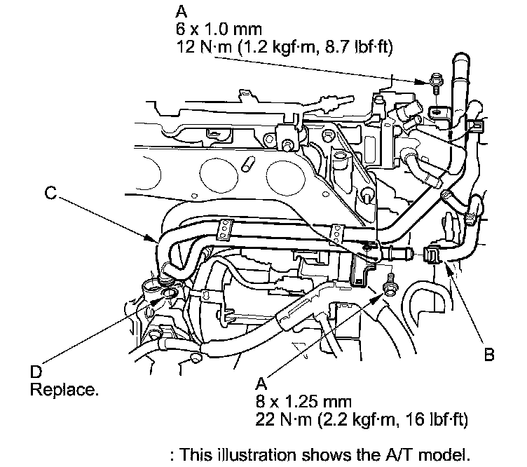 4. A/T model: Disconnect the water bypass hose (D).