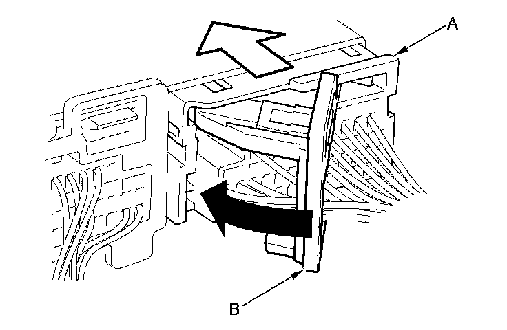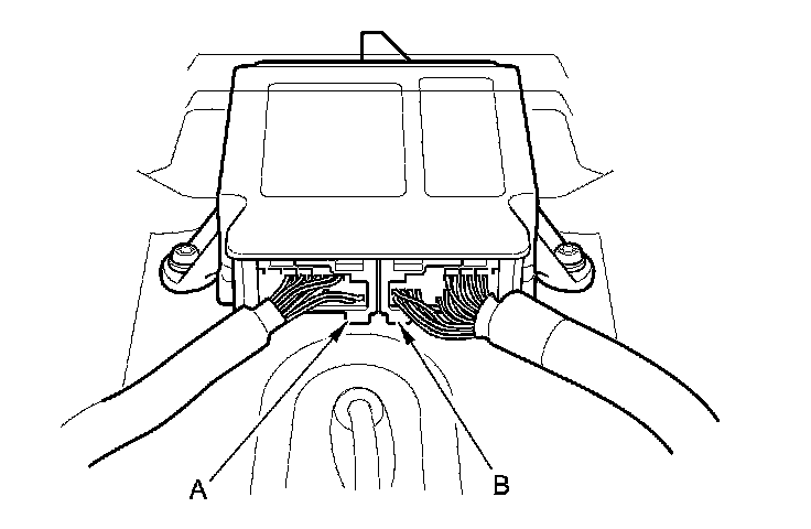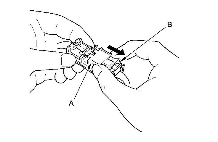 To reconnect the connector, push in on the connector (A). As the connector is pressed in, the lever (B) moves to the locked position.