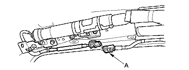 4. Disconnect the dashboard wire harness 4P connector (A) from the front passenger's airbag 4P connector.