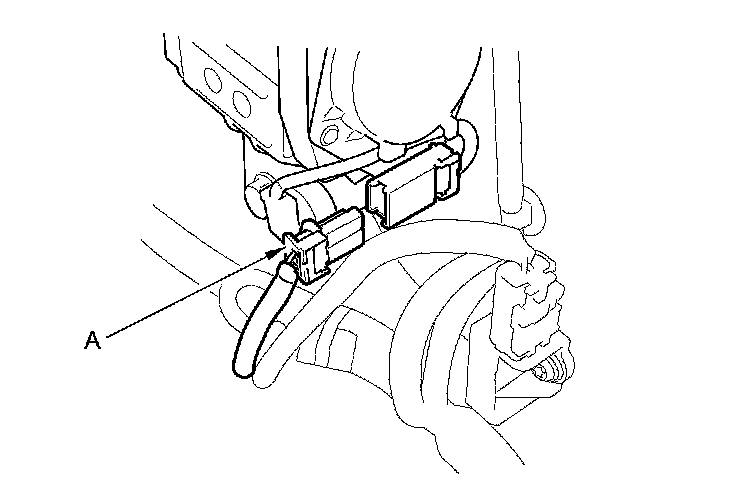 10. Disconnect the SRS floor wire harness 4P connectors (A) from the driver's and the front passenger's seat belt tensioner 4P connectors.