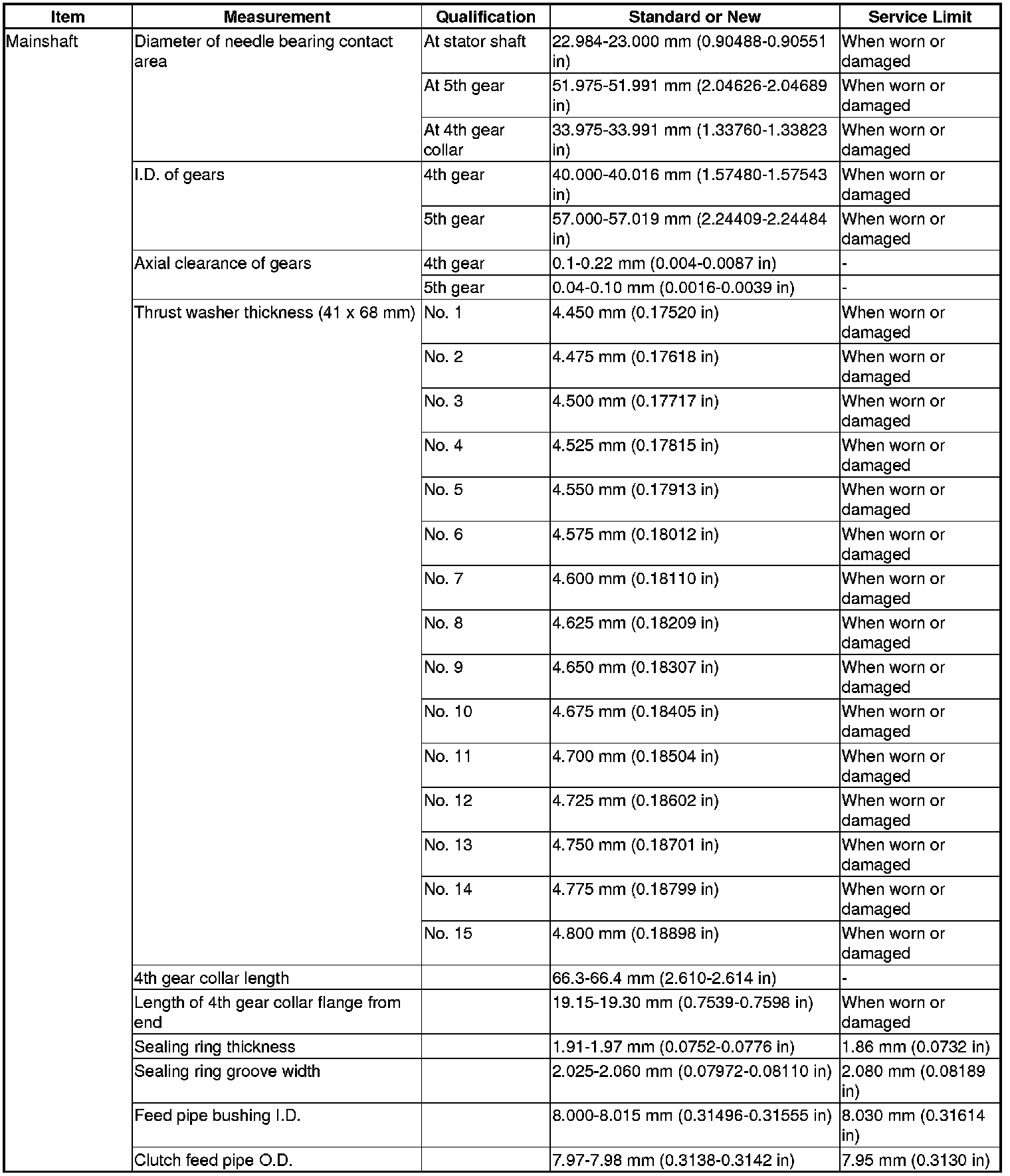 Mainshaft Specification(s) (A/T)