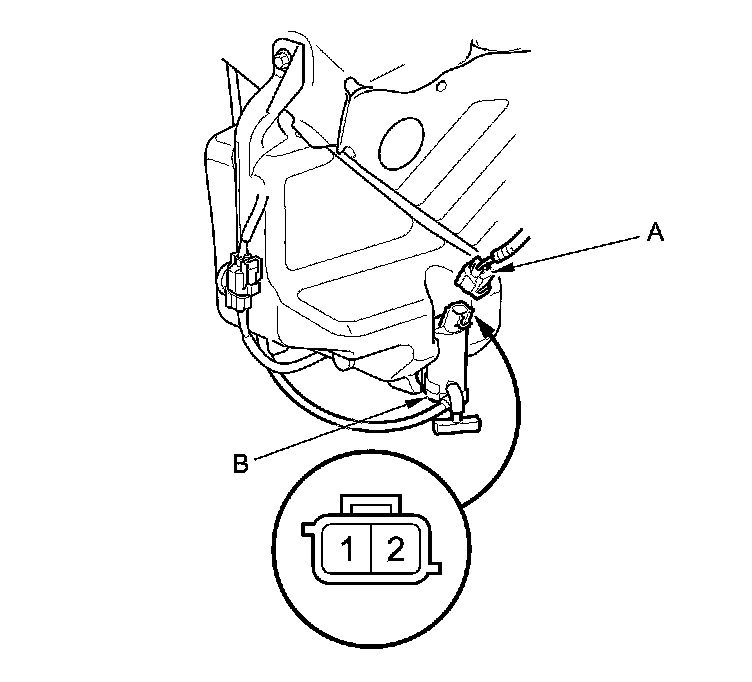 2. Disconnect the 2P connector (A) from the windshield/rear window* washer motor (B).