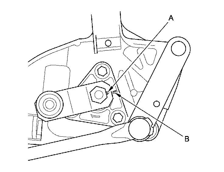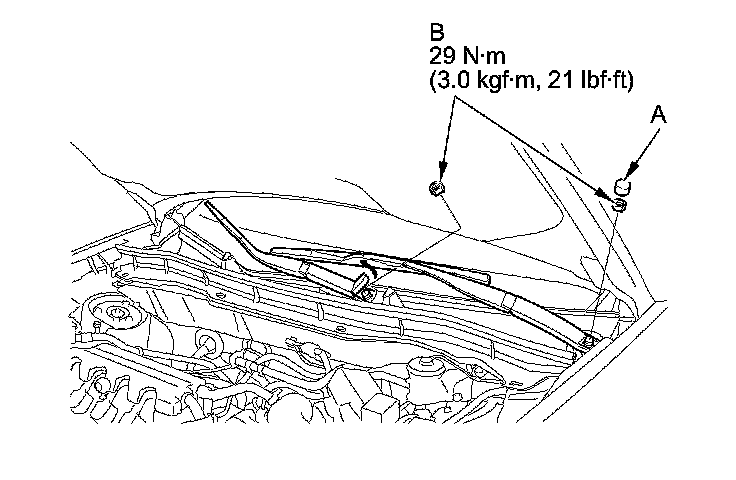 12. Install the link to the wiper motor shaft, then align the mark (A) of the link and the mark (B) of the wiper linkage assembly.