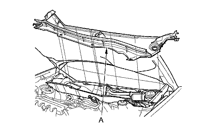 2. Close the hood, then spread protective cloths (A) on the hood to avoid scratching the hood edge.