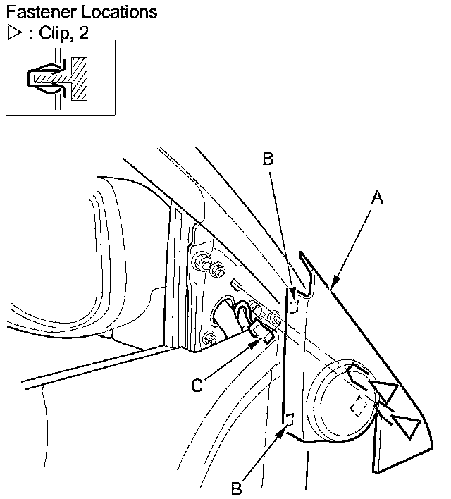 2. Disconnect the tweeter connector (C).