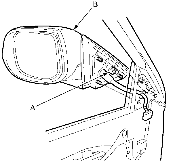 4. Disconnect the power mirror connector (A).