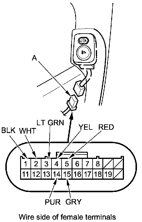 2. Disconnect the 20P connector (A) from the driver's door subharness.
