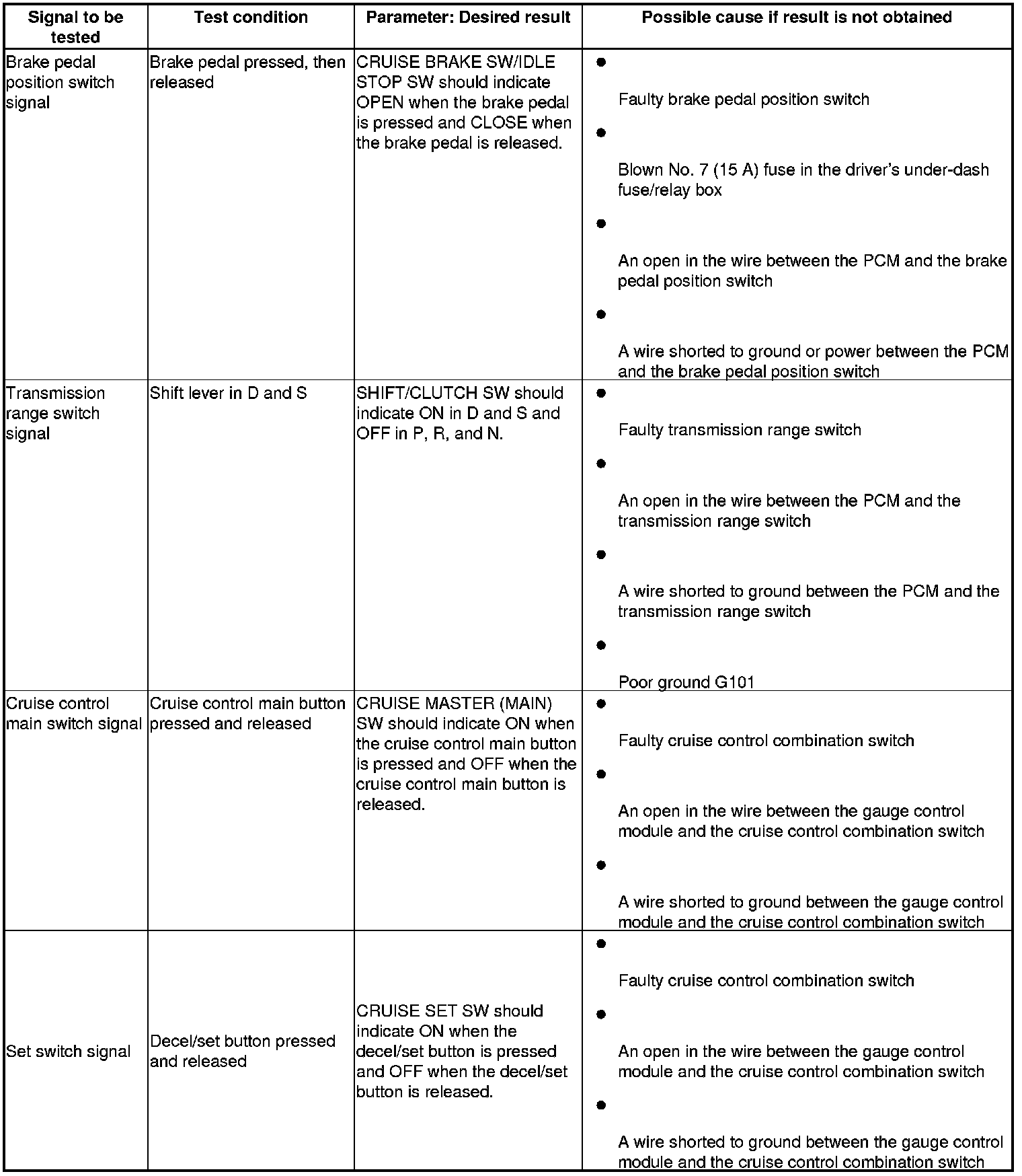 Cruise Control (PCM) Input Test