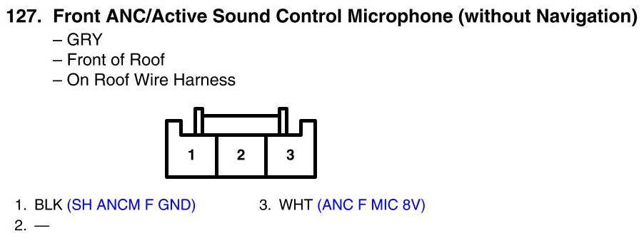 View 127 - Front ANC/Active Sound Control Microphone Connector View (without Navigation)