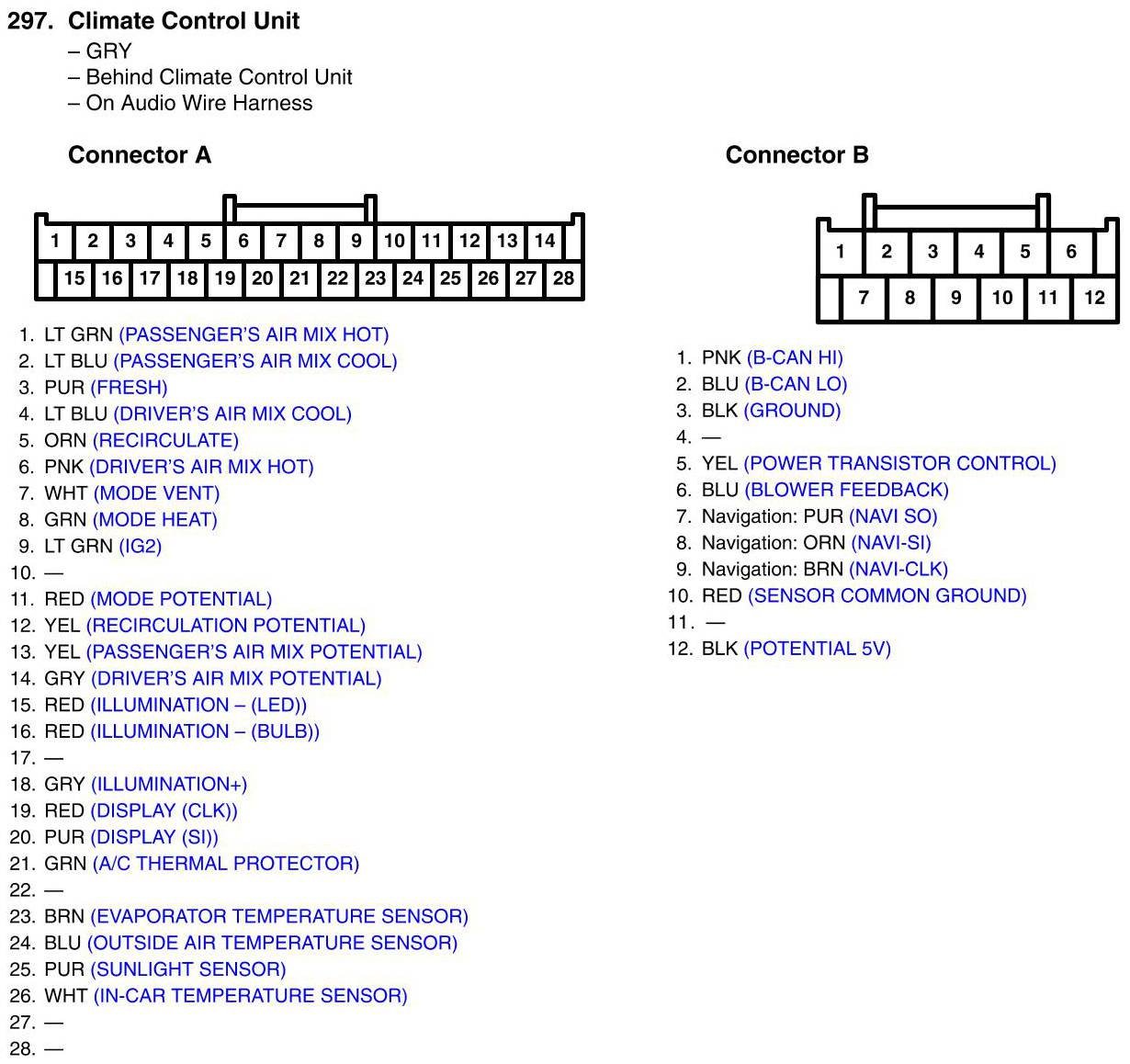 View 297 - Climate Control Unit Connector View