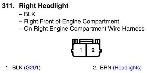 View 311 - Right Headlight Connector View