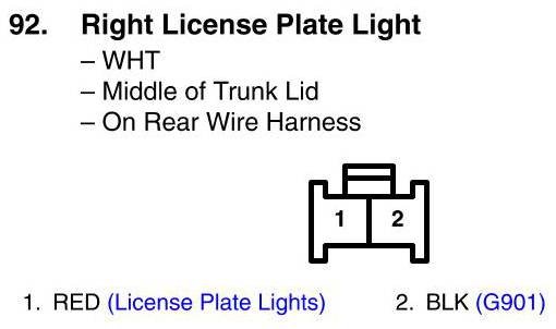 View 92 - Right License Plate Light Connector View