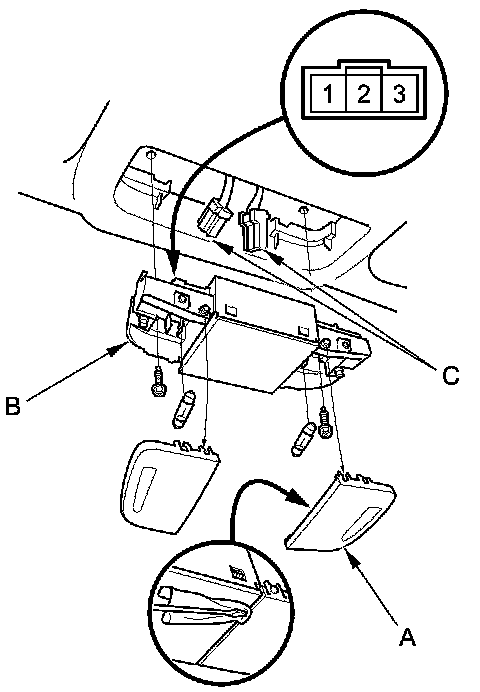 3. Remove the screws, then remove the front individual map lights (B).