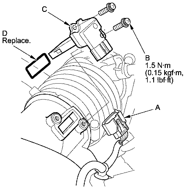 Install the parts in the reverse order of removal with a new O-ring (D).