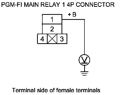 41. While disconnecting each of the parts or connectors below, one at a time, check for continuity between PGM-FI main relay 1 4P connector terminal No. 2 and body ground:
