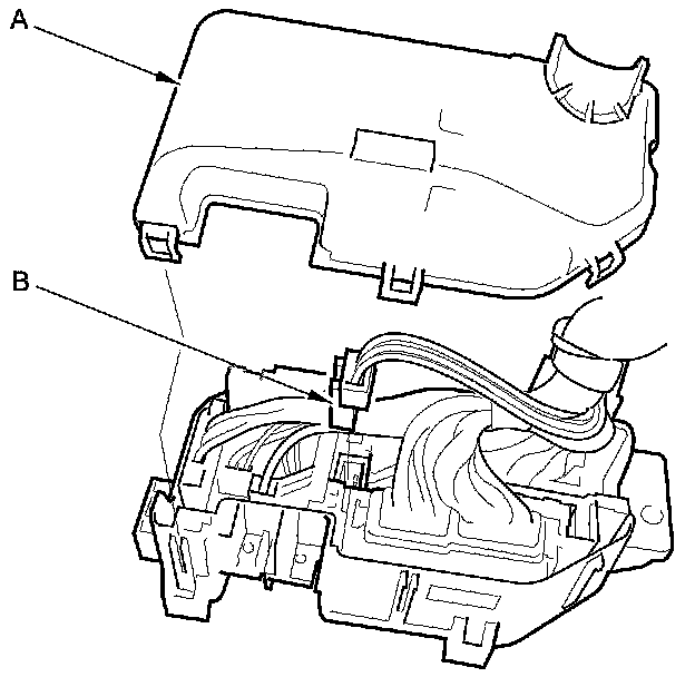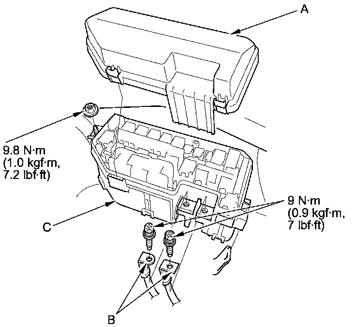 3. Remove the under-hood fuse/relay box (C) from the bracket.
