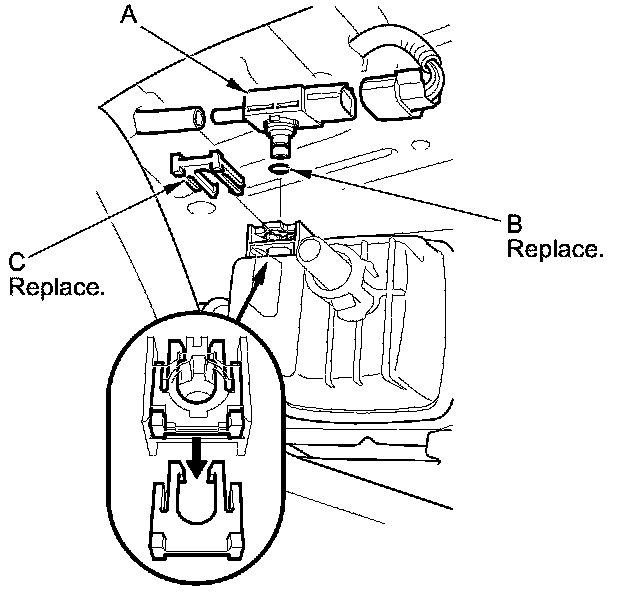 Install the parts in the reverse order of removal with a new O-ring (B) and a new retainer (C).