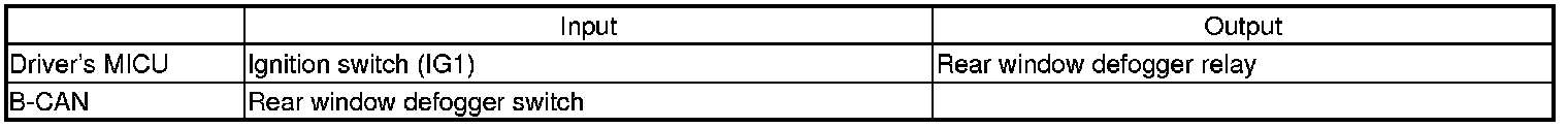 The driver's MICU control of the rear window defogger timer is based on ignition switch and rear window defogger switch inputs.