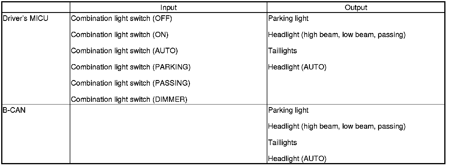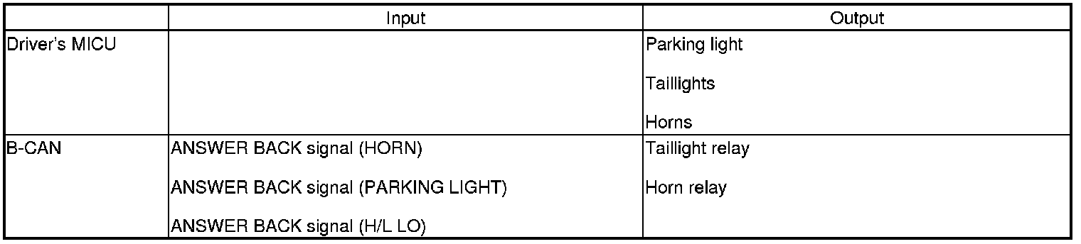 The driver's MICU control of the lighting system and horns is based on inputs from each switch and B-CAN.