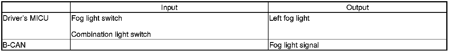 The driver's MICU control of fog lights is based on inputs from the fog light switch.