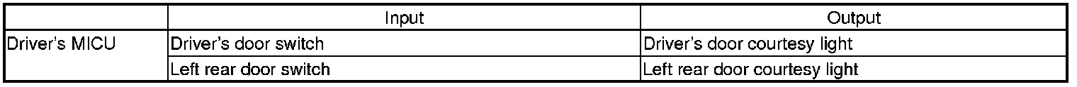 The driver's MICU control of the driver's and left rear door courtesy lights is based on inputs from the driver's and left rear door switches.