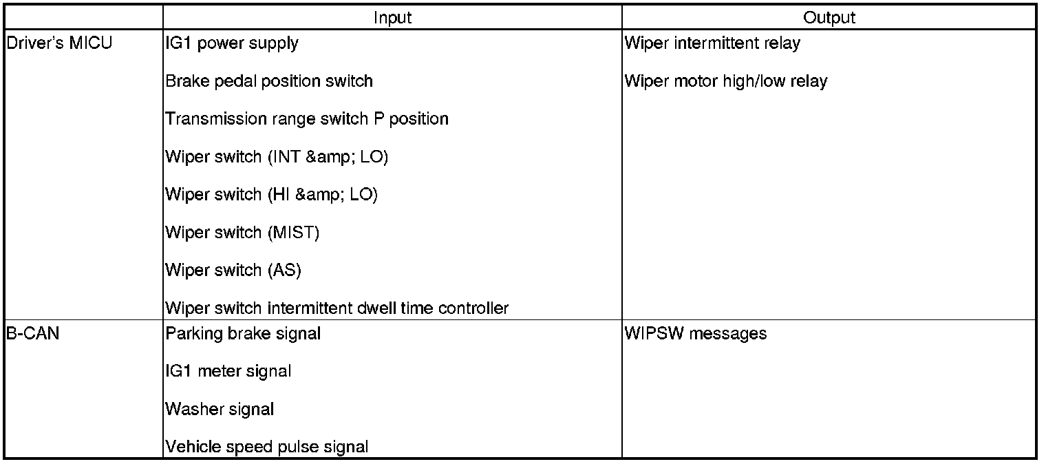 The driver's MICU control of the wiper is based on inputs from each switch.