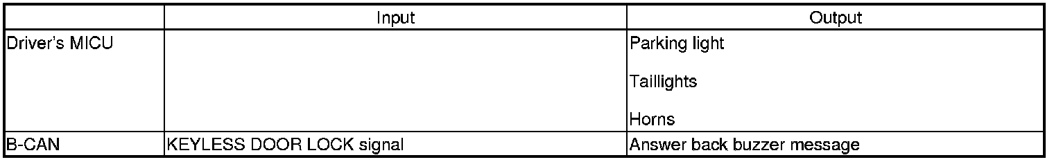 The driver's MICU control of the keyless PANIC operation is based on keyless inputs sent by B-CAN.