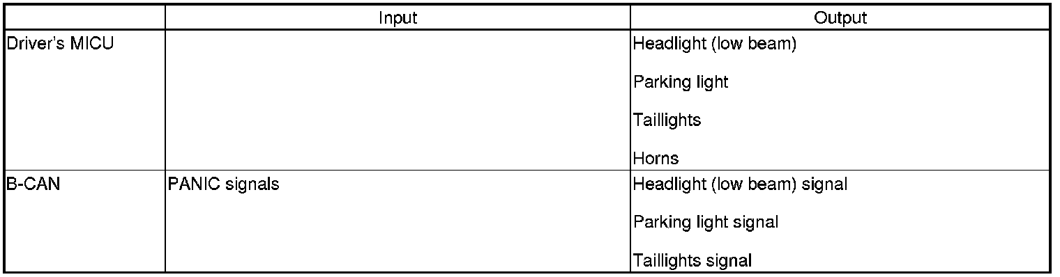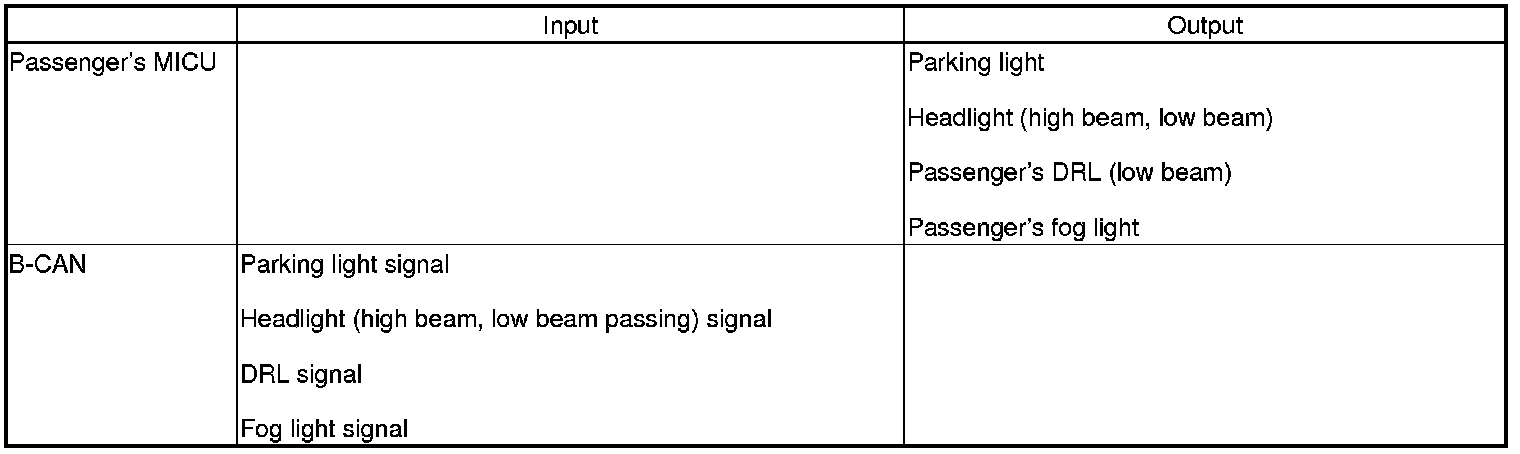 The passenger's MICU control of the front passenger's side headlight, and parking lights is based on inputs from the driver's MICU.
