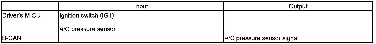 The driver's MICU sends A/C pressure sensor signal information when the ignition switch is in the IG1 position.