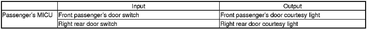 The passenger's MICU control of the front passenger and right rear door courtesy lights is based on inputs from the front passenger and right rear door switch.
