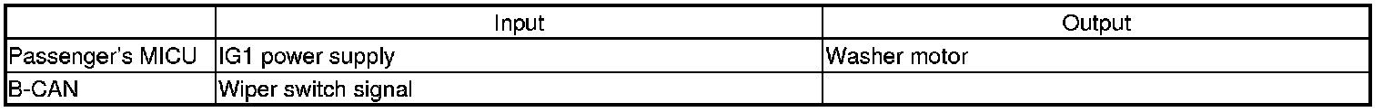 The passenger's MICU control of the washer motor is based on inputs from the wiper switch.