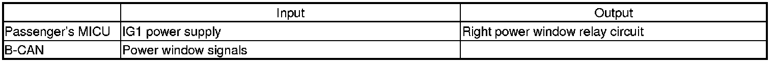 The passenger's MICU control of the power window relay circuit in the passenger's under-dash fuse/relay box is based on inputs from the power window switches.