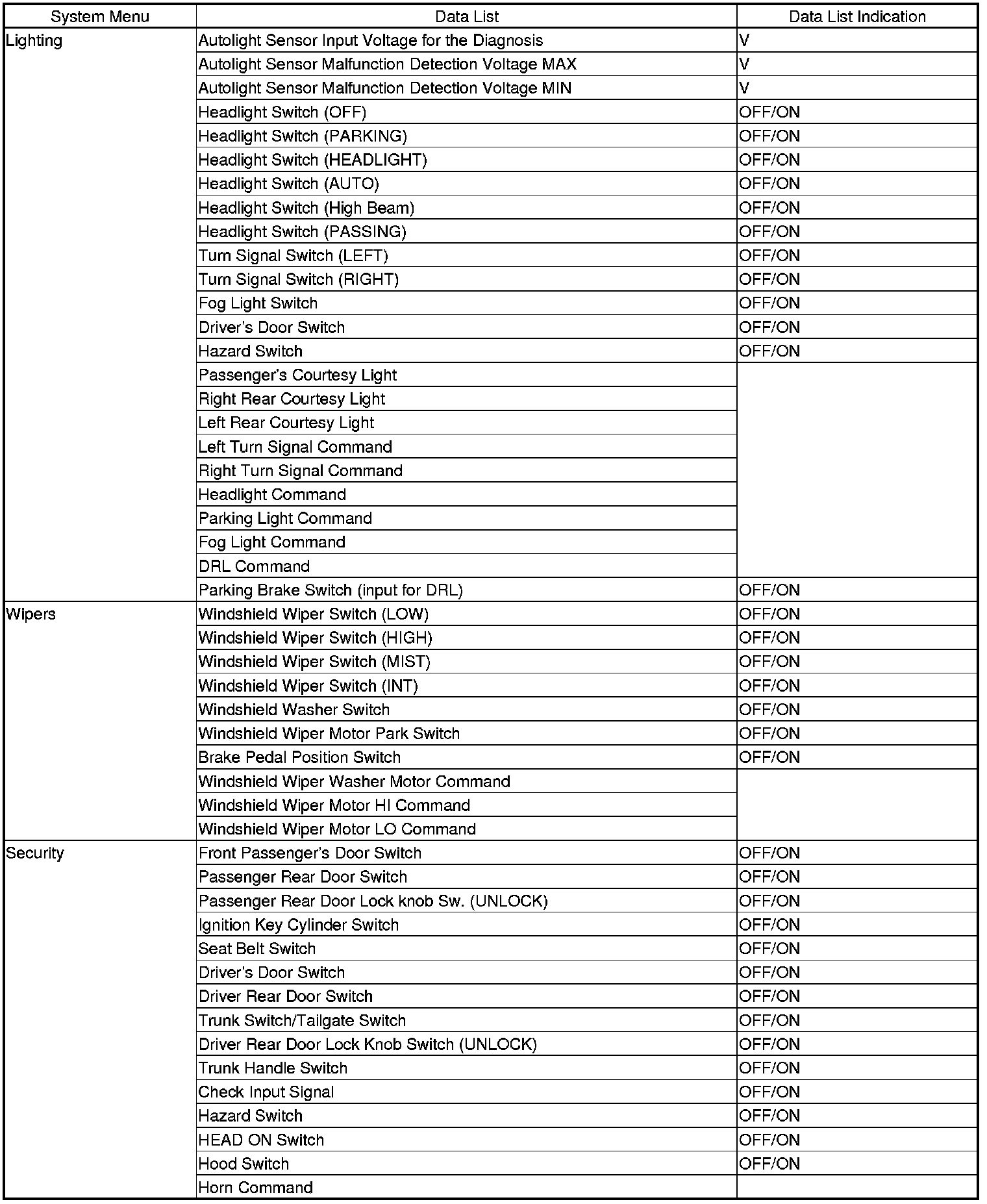 Certain inputs happen so quickly that the Data List on the HDS cannot update fast enough. Hold the switch that is being tested while monitoring the Data List. This should give the HDS time to update the signal on the Data List.