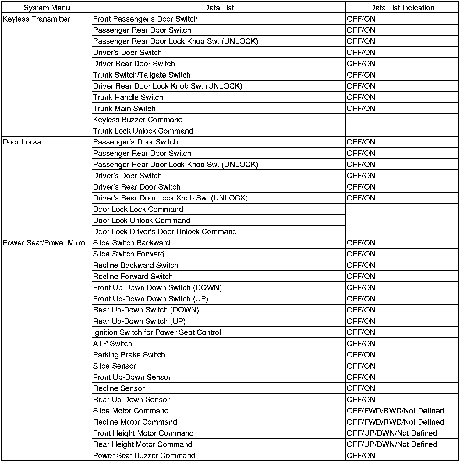 Power Door Locks (UNLOCK)
