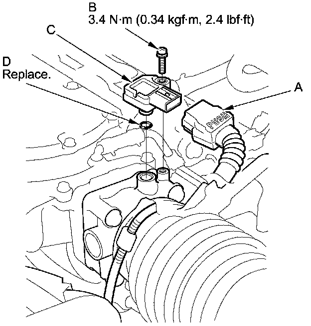 Install the parts in the reverse order of removal with a new O-ring (D).