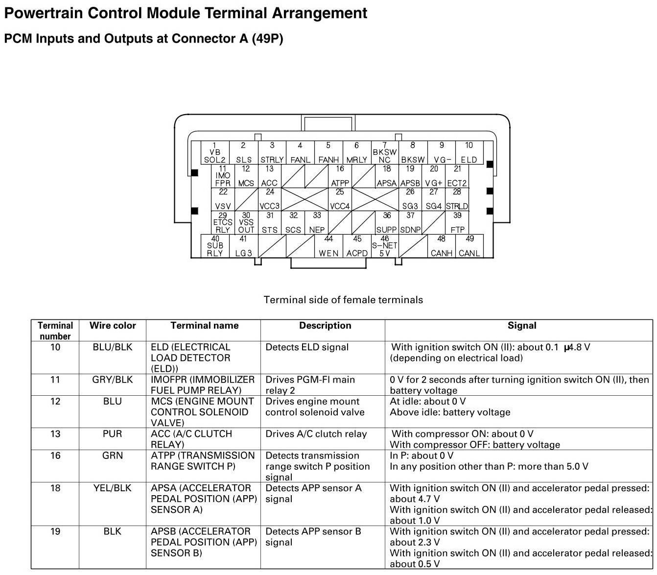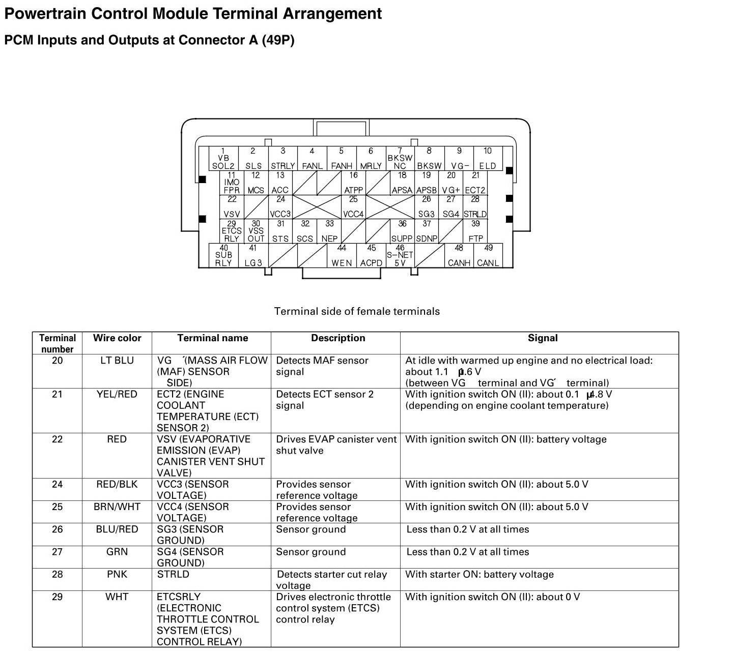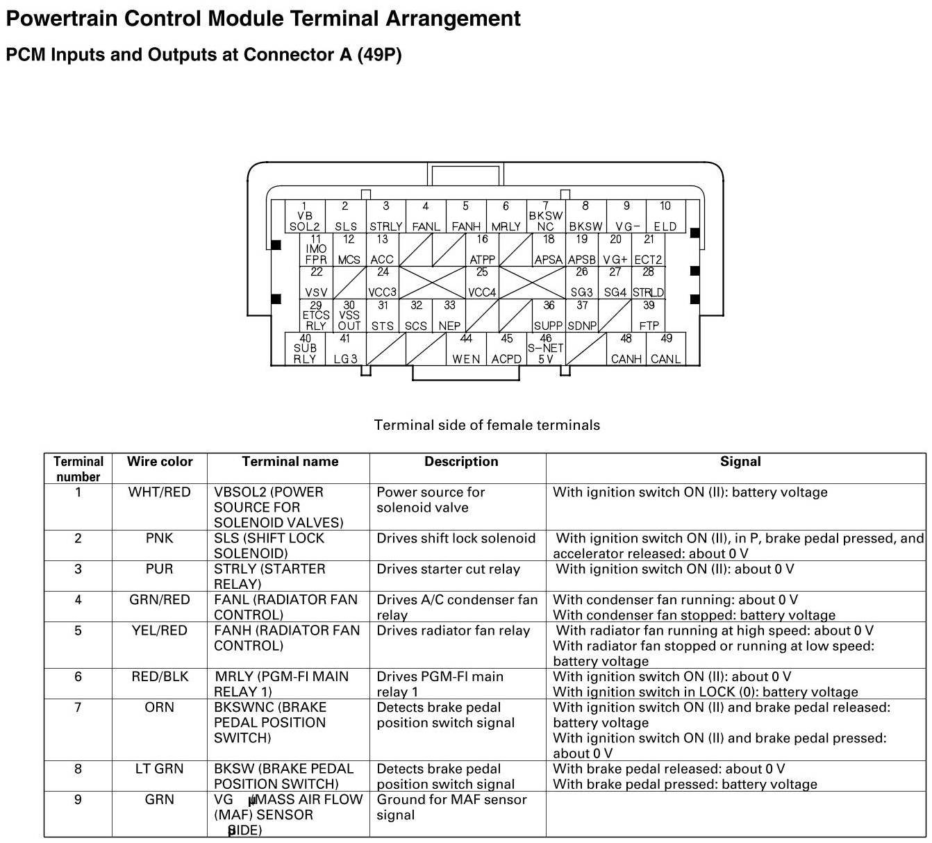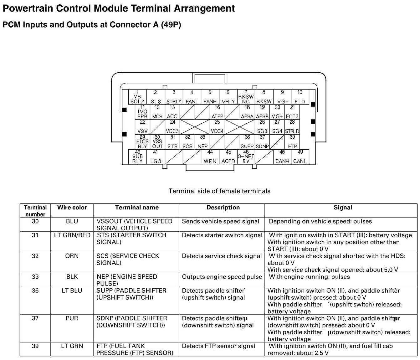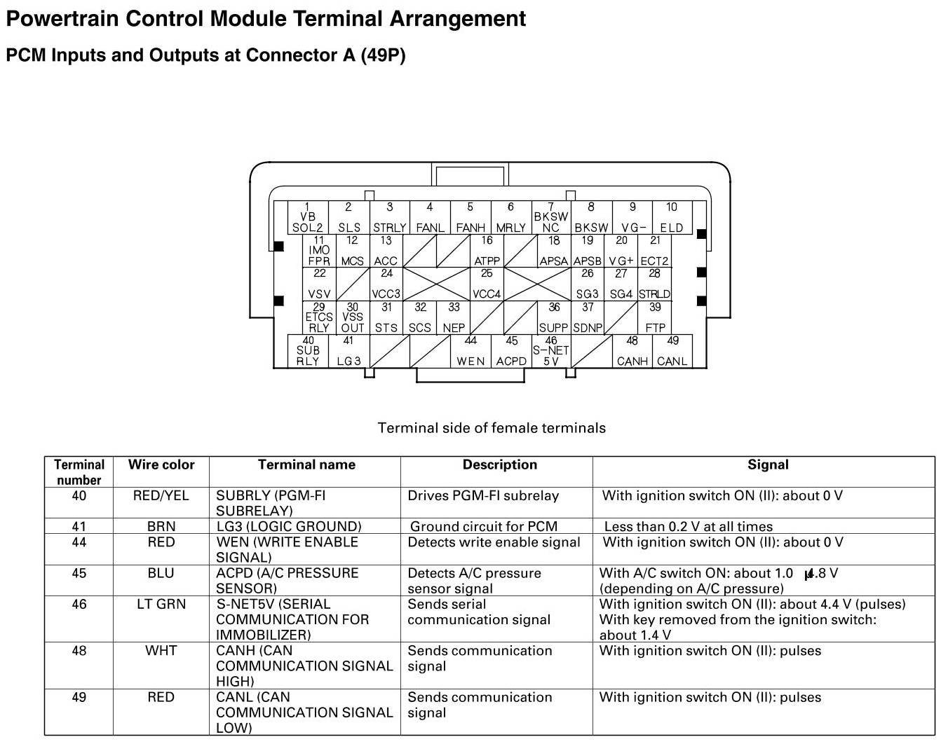 PCM Inputs And Outputs At Connector A (49P)