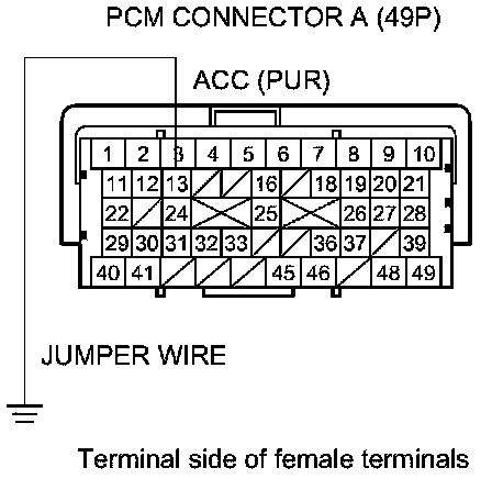 13. Momentarily connect PCM connector terminal A13 to body ground with a jumper wire several times.