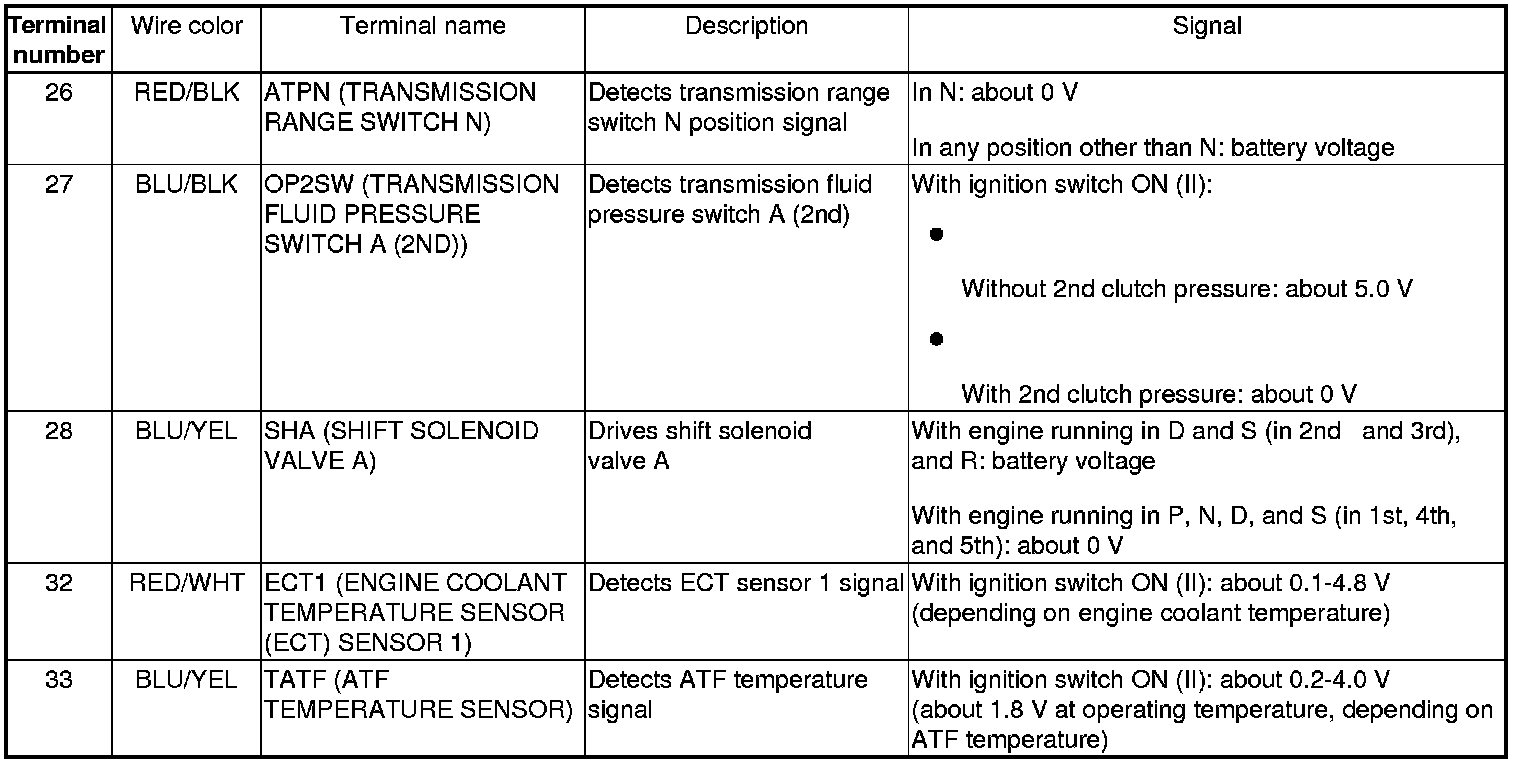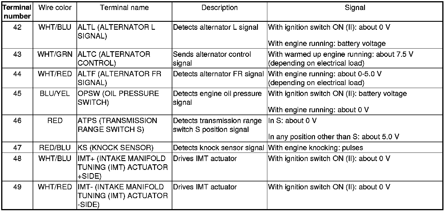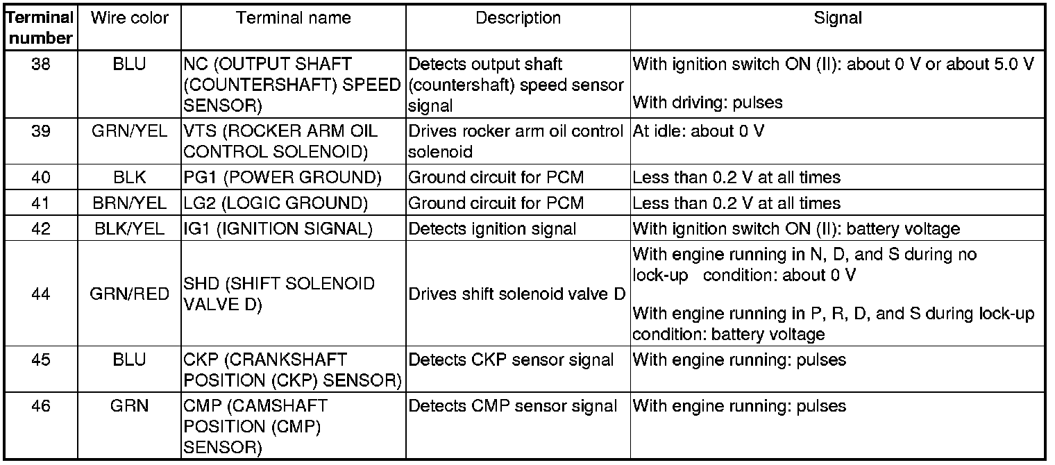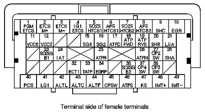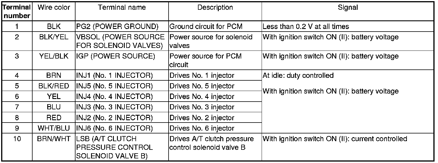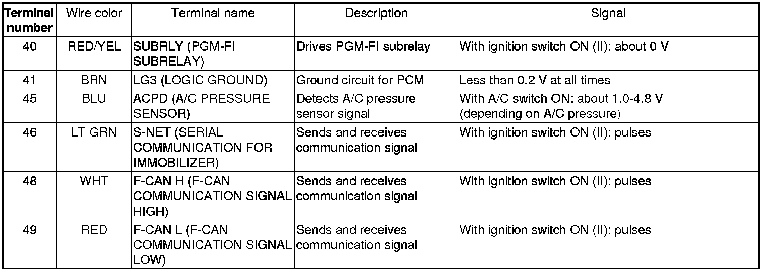 PCM Inputs and Outputs at PCM Connector A (square) (49P)