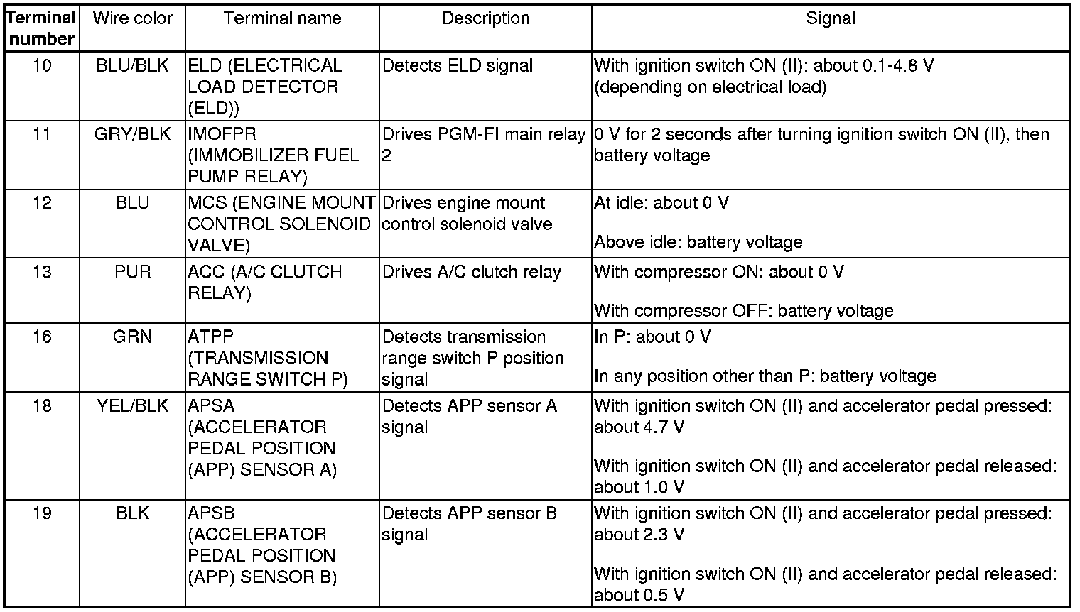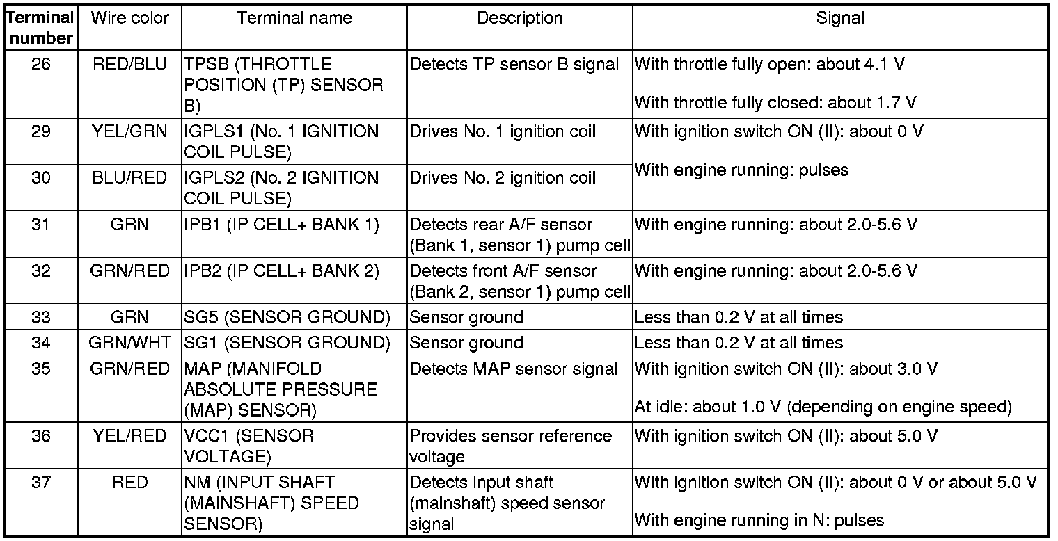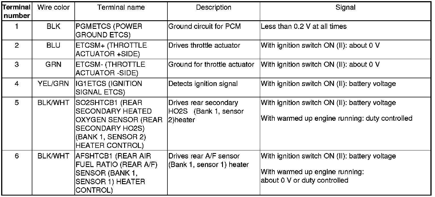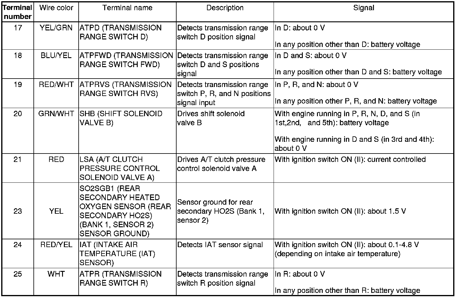 PCM Inputs and Outputs at PCM Connector A (square) (49P)