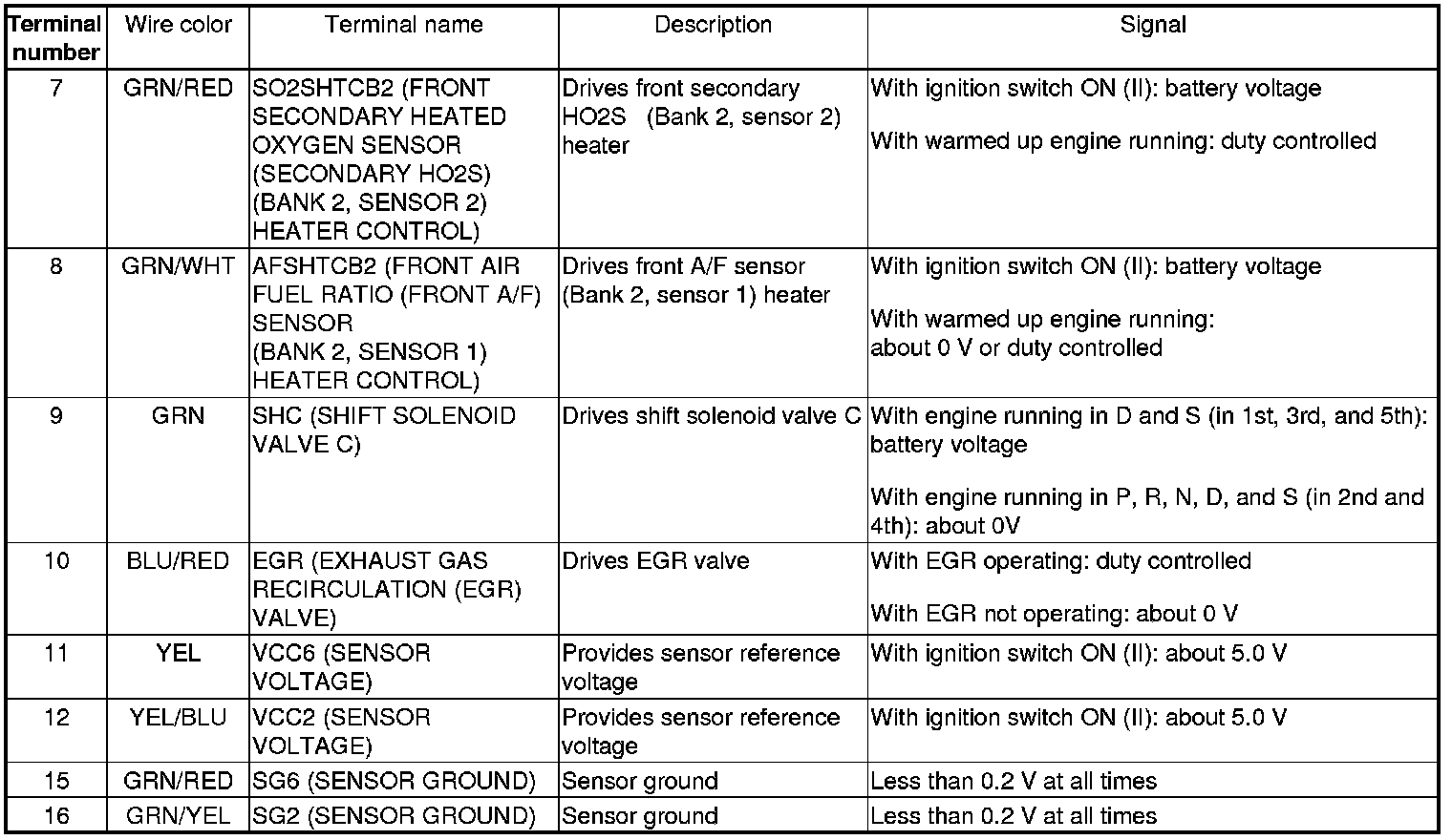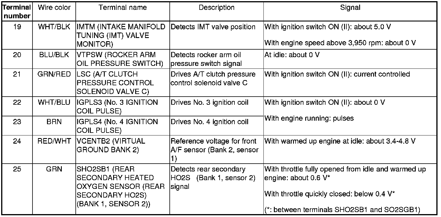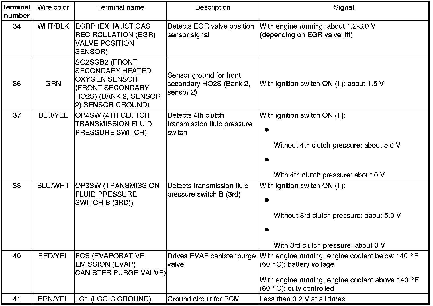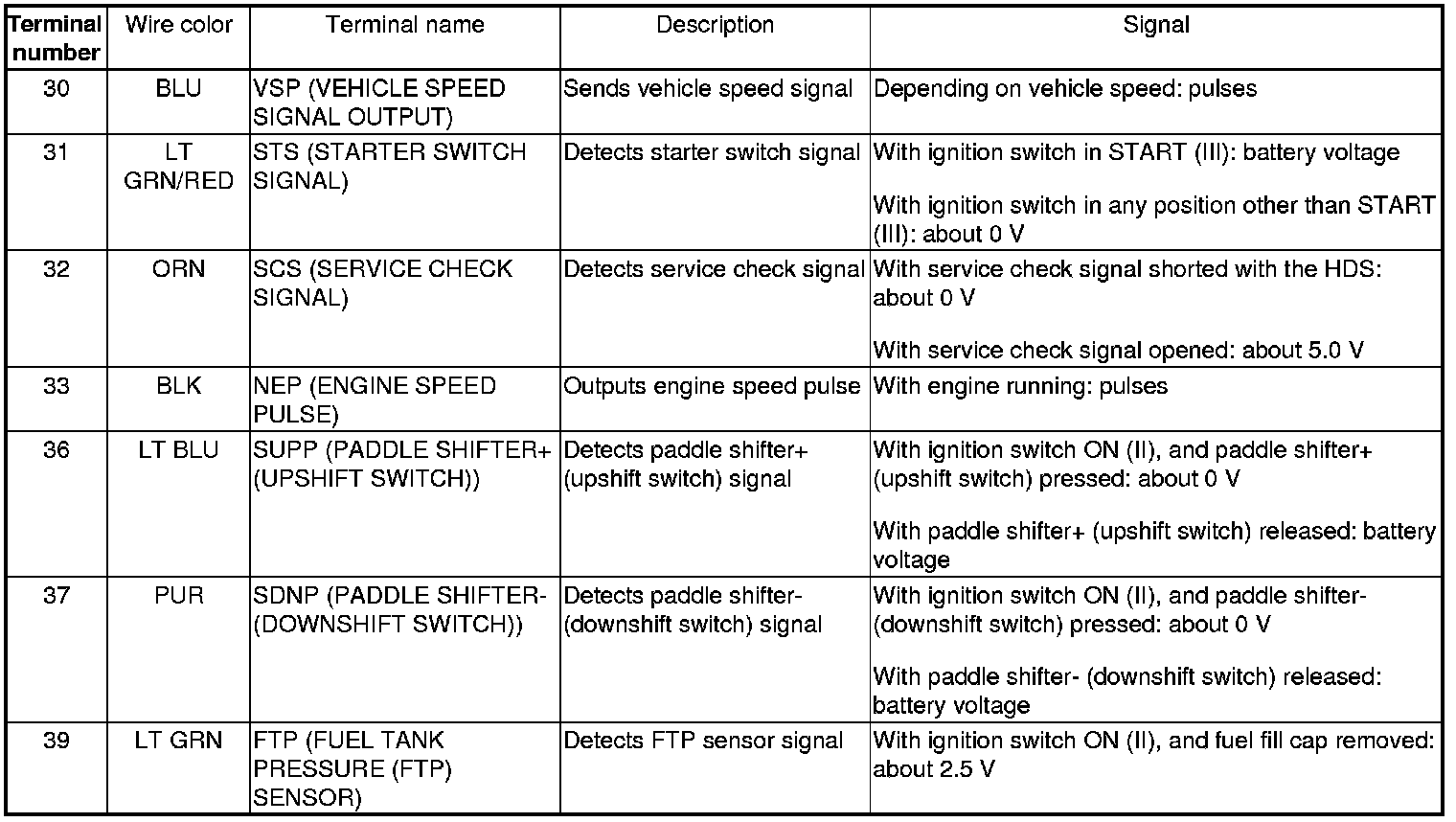 PCM Inputs and Outputs at PCM Connector A (square) (49P)