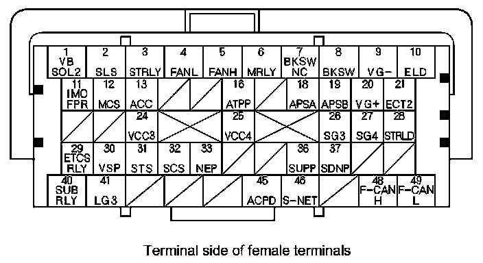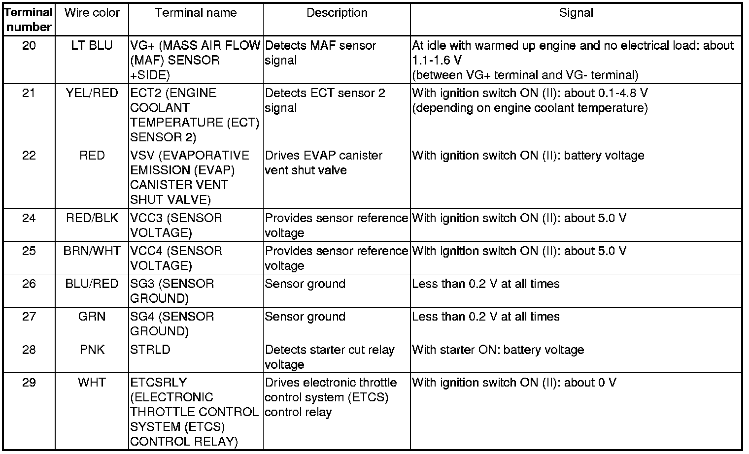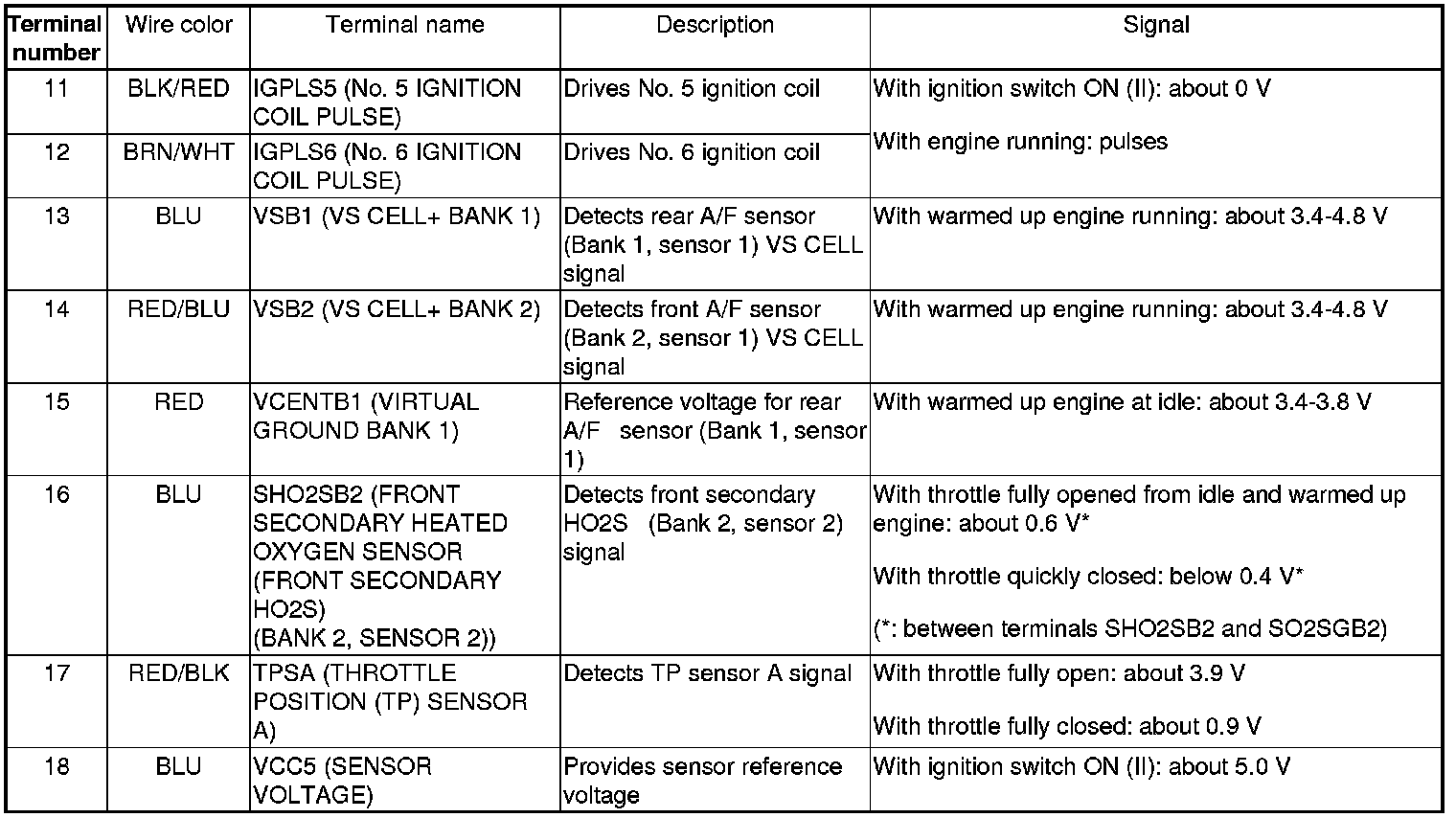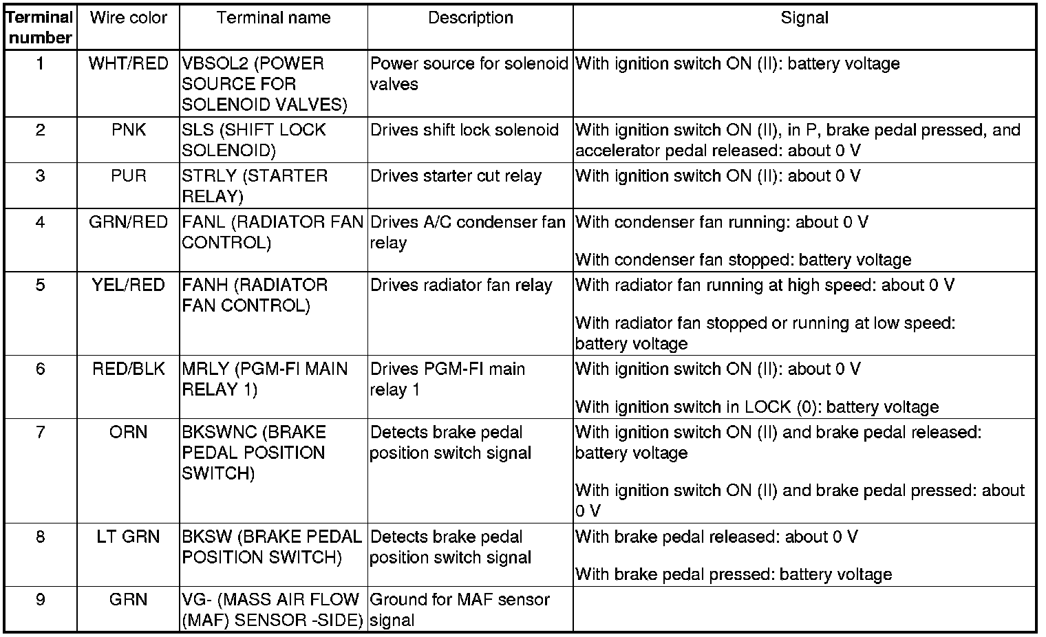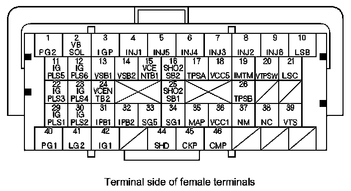 PCM Inputs and Outputs at PCM Connector A (square) (49P)
