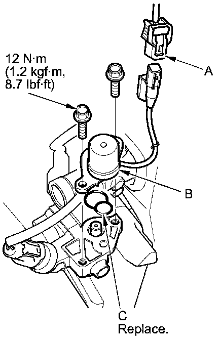 Install the parts in the reverse order of removal with a new O-ring (C).