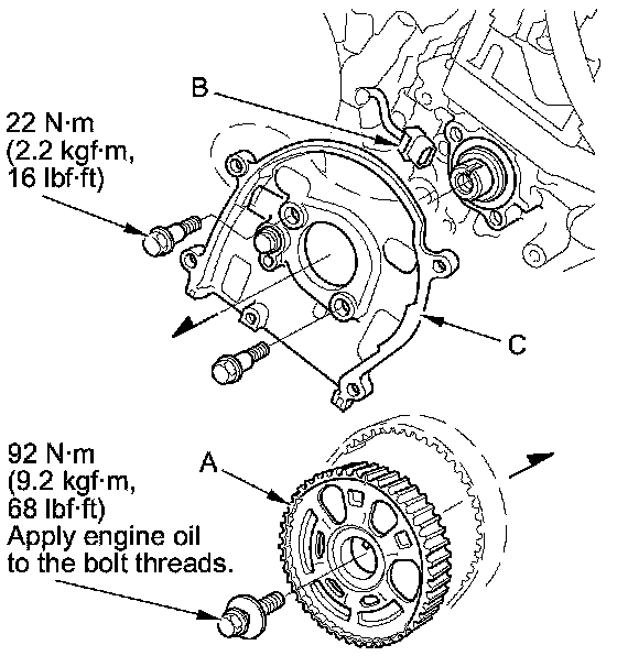 3. Disconnect the CMP sensor connector (B), then remove the back cover (C).